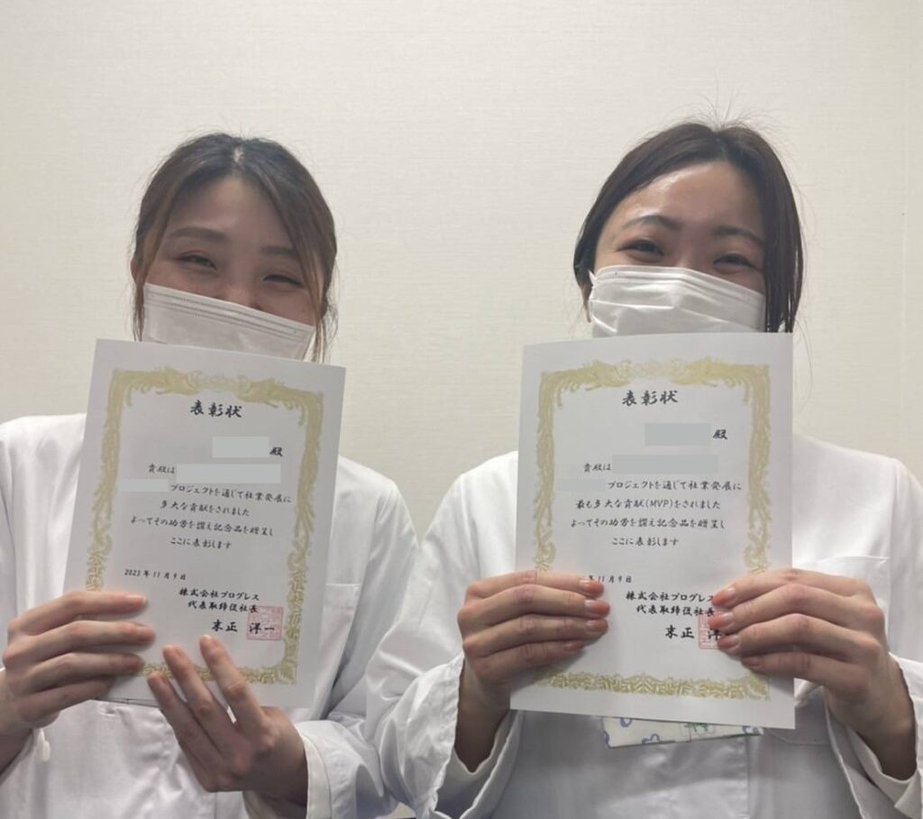 今回は、某プロジェクトに尽力し、多数例の組入に成功した社員2名を表彰いたしました。